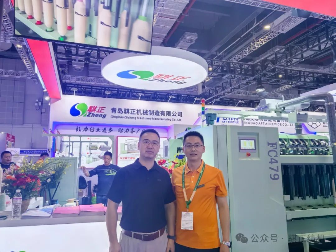 花式紗行業專(zhuan)家、震(zhen)泰紡織謝總蒞臨(lin)騏正展臺(tai)參觀(guan)指導,并(bing)對兩款產品給予(yu)高度評價